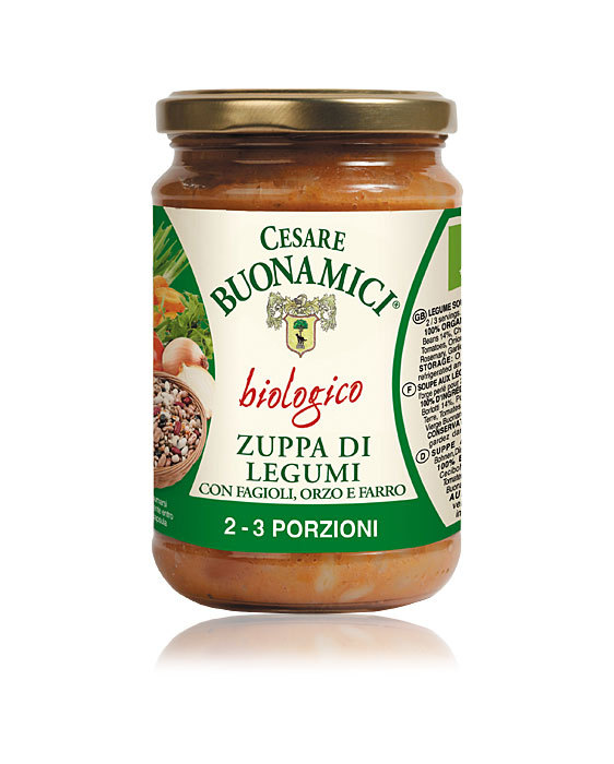 Questa zuppa, pronta per essere utilizzata, previa aggiunta di acqua di diluizione, è ottenuta da una attenta selezione di ingredienti di prima qualità certificati biologici. In una base di olio extra-vergine d’oliva vengono soffritte cipolle, carote, sedano e aglio e successivamente aggiunti fagioli bianchi e all’occhio, ceci, orzo e farro, la polpa di pomodoro e il sale marino. Una zuppa tradizionalmente mediterranea, saporita e preparata nel rispetto dei principi e della tradizione dell’Azienda Agricola Buonamici.